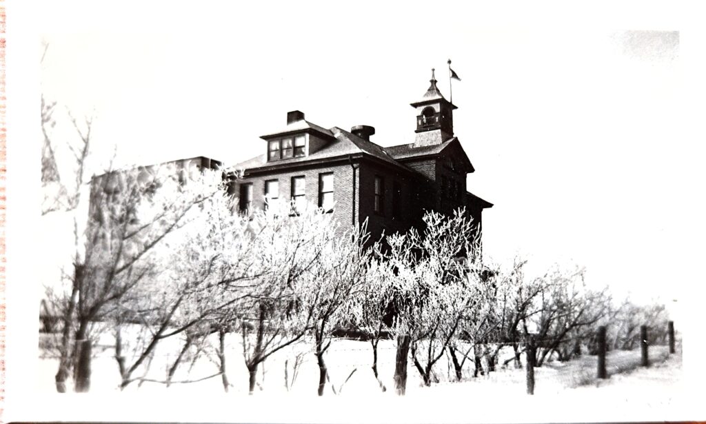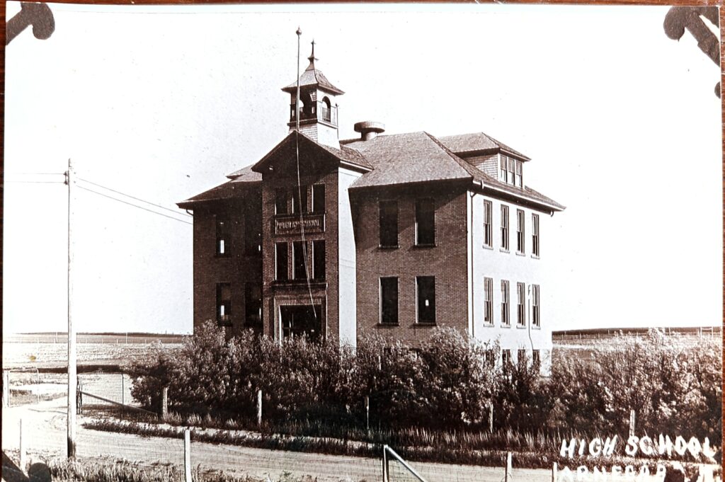 - 1914 – 1915 — Construction and opening of Arnegard School, a one-storey, four-room schoolhouse teaching grades 1–12. Here is the earliest photo of the building we found, dating 1914 :